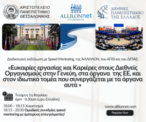 Επαγγελματική Εμπειρία και Καριέρες στους Διεθνείς Οργανισμούς στη Γενεύη, στα όργανα της Ευρωπαϊκής Ένωσης και στον ιδιωτικό τομέα που συνεργάζεται με τα όργανα αυτά